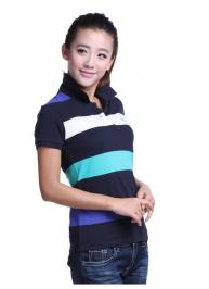 女款大條紋翻領(lǐng)T恤衫定做