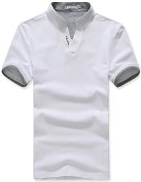 衣領:純棉壓光衣領,采用羅紋織法,舒適耐穿不翹邊。單邊門襟做法,款式創新,更顯高檔!