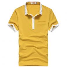 【定制】黃色時尚男款T恤衫修身款式制作加工